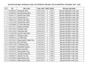 Trường THCS Hòa Lạc có 07 học sinh đạt giải cấp toàn quốc (01 Nhì, 02 Ba, 04 khuyến khích) và có 48 học sinh đạt giải cấp Tỉnh (04 Nhất, 11 Nhì, 13 Ba, 20 khuyến khích) trong cuộc thi olympic tiếng Anh trên internet (IOE) cấp xã, phường năm học 2025 – 2026