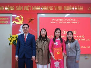 Sáng ngày 03/02/2026, nhân dịp kỷ niệm 96 năm Ngày thành lập Đảng Cộng sản Việt Nam (03/02/1930 – 03/02/2026), Đảng bộ phường Móng Cái 1 long trọng tổ chức Lễ trao tặng Huy hiệu Đảng, công bố các quyết định kết nạp đảng viên và quyết định thành lập các Đảng bộ cơ sở trực thuộc. Tại buổi lễ, Quyết định thành lập Đảng bộ Trường THCS Hòa Lạc đã chính thức được công bố, đánh dấu bước phát triển quan trọng trong công tác xây dựng tổ chức Đảng tại nhà trường.
